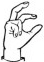 На ћирилици написано СУЗАНА ШВРАКА састоји се из 12 слова [?]. Исписано ћириличном једноручном азбуком за глувонеме: